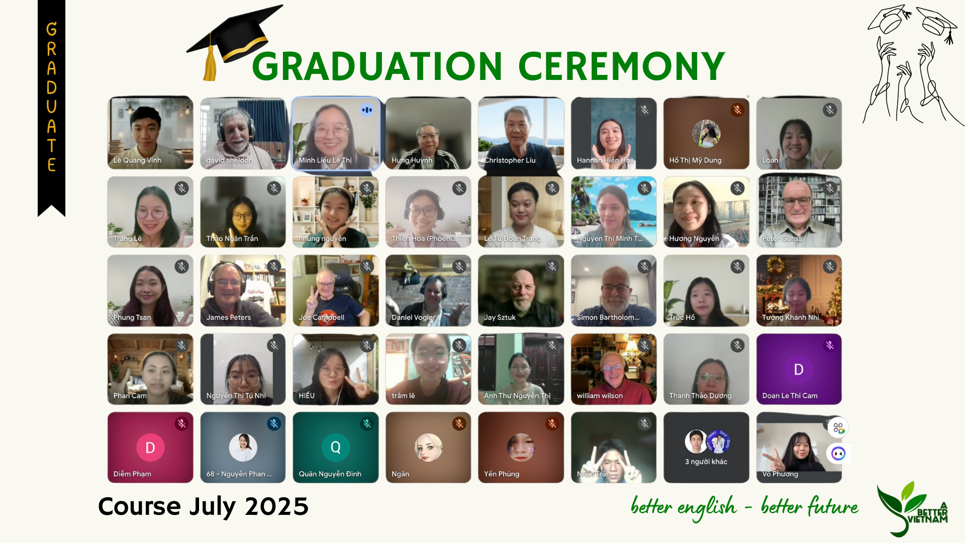 Ngày 04/01 vừa qua, A Better Vietnam đã tổ chức buổi lễ tốt nghiệp đặc biệt dành cho các học viên của khóa tháng 07/2025. Đây là khoảnh khắc tràn đầy cảm xúc khi chúng mình chứng kiến sự tham gia nhiệt tình từ các học viên, giáo viên và thành viên dự án.
